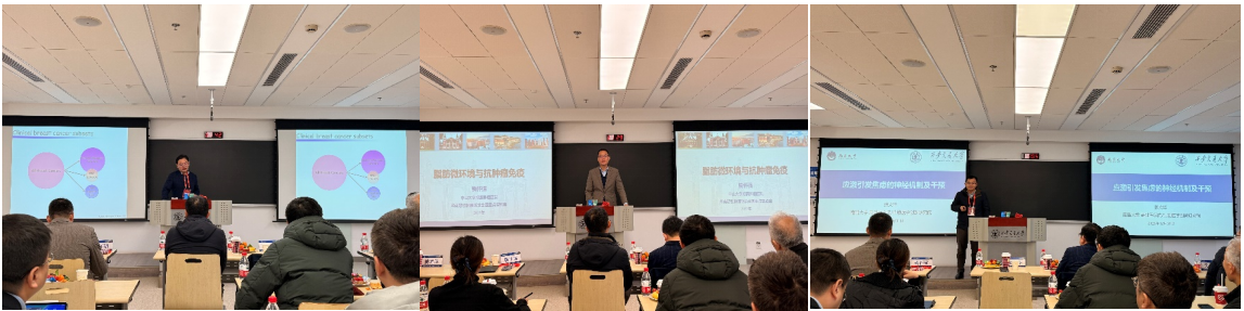 张佩景教授(电子科技大学) 带来了题为《三阴性乳腺癌耐药及转移机理研究》的报告,深入剖析了该疾病治疗的难点与潜在突破口。张文华教授(南昌大学) 以《应激引发焦虑的神经环路与分子机制》为题,揭示了心理应激导致焦虑障碍的生物学基础。靳怀强研究员(中山大学肿瘤防治中心) 汇报了《癌旁脂肪微环境》的最新研究,探讨了肿瘤微环境在癌症进展中的关键作用。