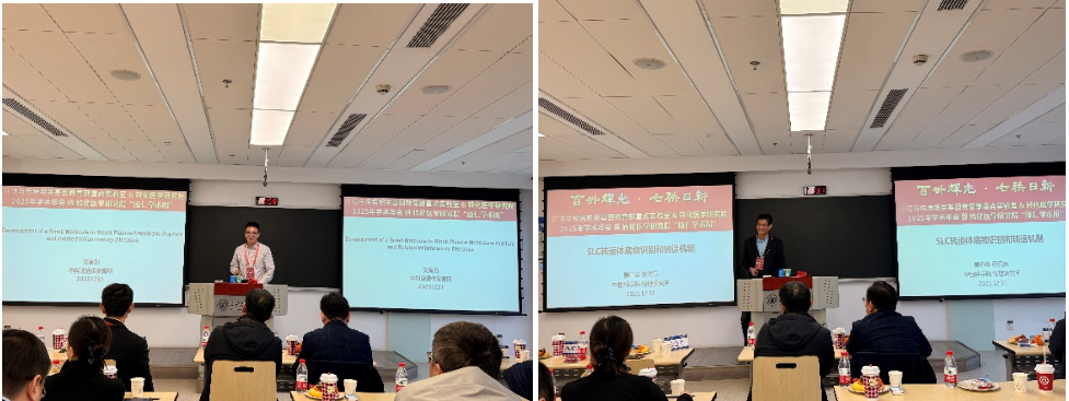 下午的会议在孟列素教授的致辞下拉开帷幕,随后由分子转化所副所长焦联营教授主持。下午的报告环节共呈现七场学术分享。李海韵副教授首先作《C-反应蛋白单体通过激活非传统CD14/TLR4通路介导炎症反应》报告;黄超助理教授(导师:肖正涛教授)介绍《利用网络拓扑差异解析单细胞中的动态基因扰动》;程晓娜(导师:李冬民教授)讲解《PDCD4通过HNF4A/GK轴调控脂质代谢参与MASLD的发生》。短暂休息后,张晨阳博士生(导师:赵柏林教授)汇报《非同源末端连接修复中断裂DNA末端联合和处理的分子机制》;王宇博士生(导师:孟列素教授)阐述《巨噬细胞几丁质酶样蛋白通过调控胆固醇代谢参与动脉粥样硬化的机制研究》;任雅坤博士生(导师:张义磊教授)带来《全新铁死亡诱导剂FILMS的分子机制与抑癌功能研究》。研究内容紧扣炎症、代谢性肝病、DNA修复、心血管疾病及肿瘤治疗等转化医学核心问题,体现了从基础机制到潜在应用转化的鲜明特色。