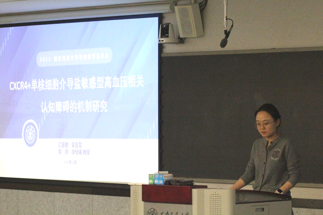 吴含雪同学、王一东教授、张伊教授、袁恒助理教授四位报告者在下半场进行了研究分享,下半场的报告内容前沿且视角多元,从脑RAS系统在高血压和认知障碍中的最新进展,到内皮微环境与肝纤维化的关系,再到S1P/S1PR1调控冠脉内皮屏障功能在心肌肥大中的机制研究,以及拟杆菌与普拉梭菌交叉喂养改善慢性肾病的机制研究,聚焦于将基础研究成果转化为临床应用的关键问题,为解决临床难题提供了新的视角和潜在靶点。